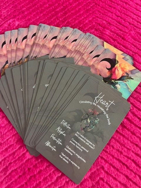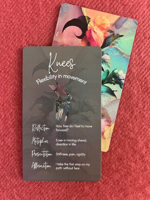 You pull the card for “Lower Back,” and it invites you to explore themes of support, safety, or financial fear.